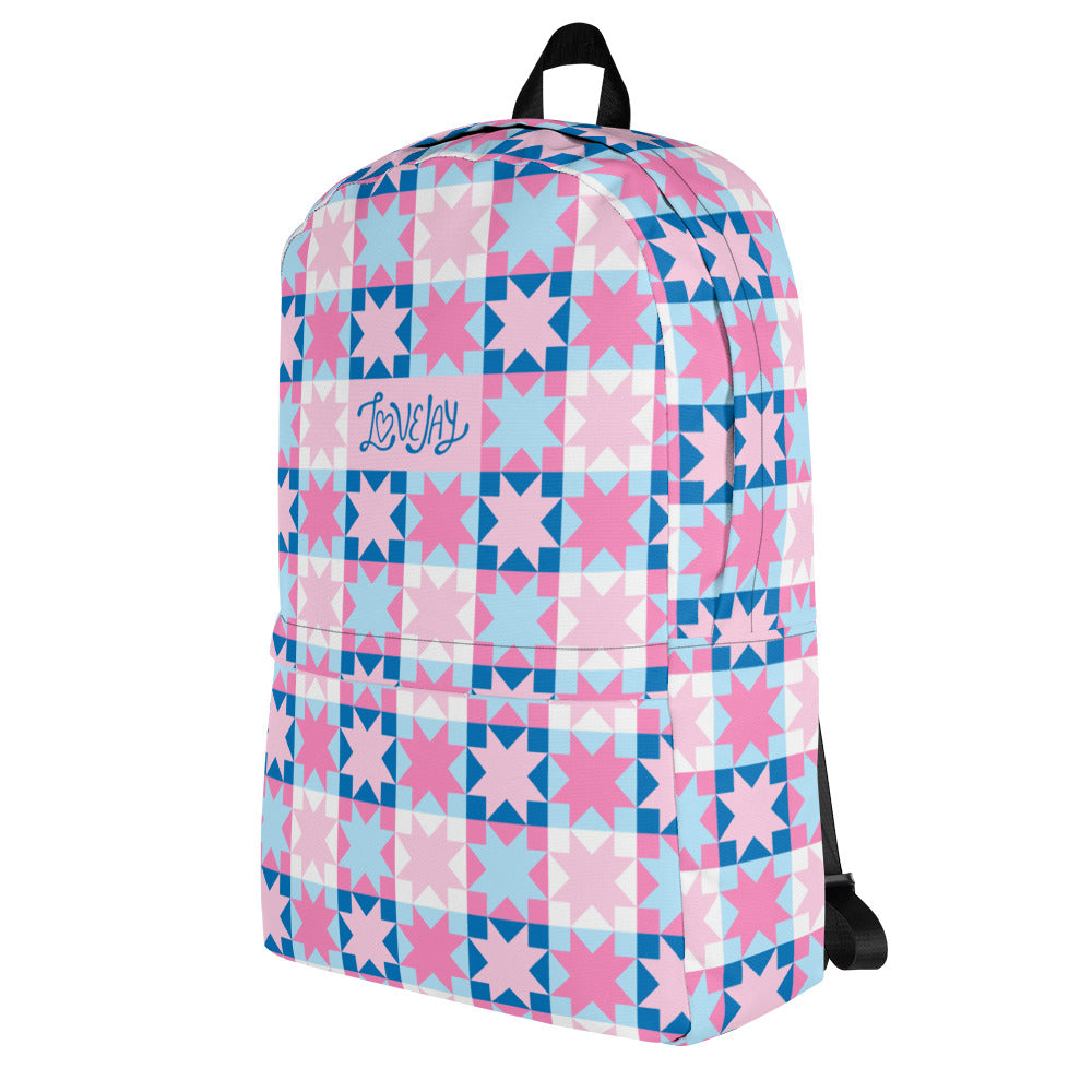 Quilting B – Bringing it all together - this medium size pack is just what you need to carry a bit of this and that! Pockets (including one for your laptop) are totally there for you. You can count on LoveJay to help you organize and keep your essentials dry with a fab print on water-resistant fabric. This pack is: